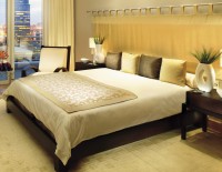 ベッドのアクセントとして高級ホテルでも多用されている円柱型やスクエア型のクッションです。