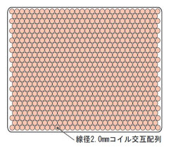 最近ホテル業界で主流となってきているポケットコイルマットレスの特徴としては、コイルが連結されておらず、一個一個が独立していますので、体圧分散効果に優れ、より自然な寝姿勢が保てるという利点にあります。マットレスに上からある一定の圧力を加えた際、ボンネルコイルマットレスの場合、押さえた周囲も一緒に沈むのに対して、ポケットコイルマットレスでは、押さえた箇所だけが沈むというイメージです(下図ご参照)。例えばダブルルームなどで、横に一緒に寝られたかたが寝返りを打たれても気付きにくいとも言われています。ポケットコイルマットレスでは、身体を「面」で支えるというより「点」で支えるという特徴があるのです。