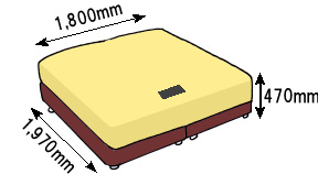 ◇マットレスサイズ 1,800mm x 1,960mm x 220mmH ◇ボトムサイズ 1,820mm x 1,970mm x 250mmH (全体高 470mmH) ※マットレスは「一本物仕様」か、 「二分割ジョイント仕様」のどちらかを 選べます。 (下部ボトムは「二分割」となります) |