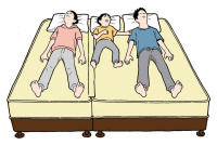 お子様を挟んで、ご家族で寝ることも可能。 高級ホテルのファミリールームの様に、 川の字になって・・・ |