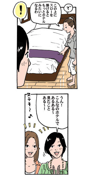 実際のホテルでは、箱型になっていないフラットなメイキングシーツが一般的です。 |