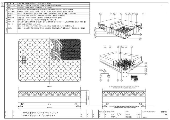 ■この図面は、実際にホテルにベッドが納入される前に、ホテル様や設計事務所宛に提出される資料の一部です。